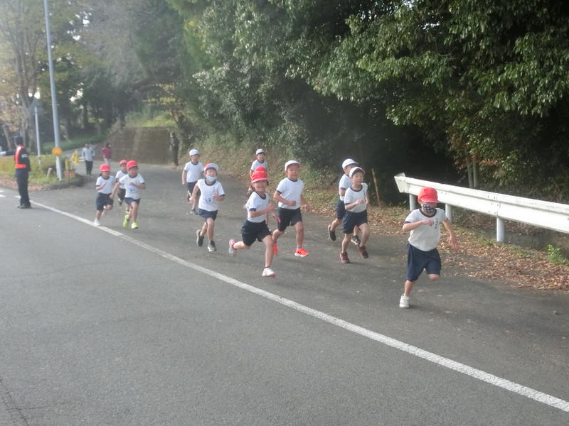 花丸持久走大会の試走を行いました。山本昌信巡査部長(御船警察署上野駐在所)、村上久雄さん(田代東部地区交通安全協会支部長)、井ノ一義輝さん(七滝地区交通安全協会支部長)に、試走の安全の見守りをしていただきました。子供たちは、今年初めて走る校外のコースでしたが、気持ちを込めて元気いっぱいに走りぬきました(^^)/
