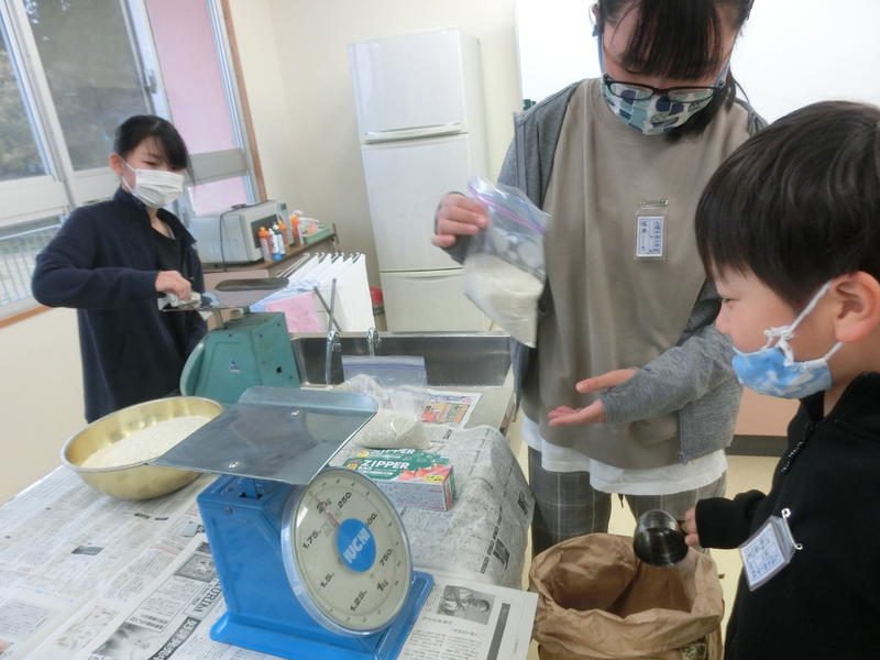 花丸5年生が育てた「もち米」を袋詰めしました。500ℊずつはかりで量っていました。12月6日(日)の持久走大会の日に、持久走大会を見守っていただいた地域の方々(防犯ネットワーク等)にお礼の気持ちとしてお配りします。また、子供たちにもお土産として配ります。5年生が心を込めて育てた「もち米」です。お楽しみに(^^)/