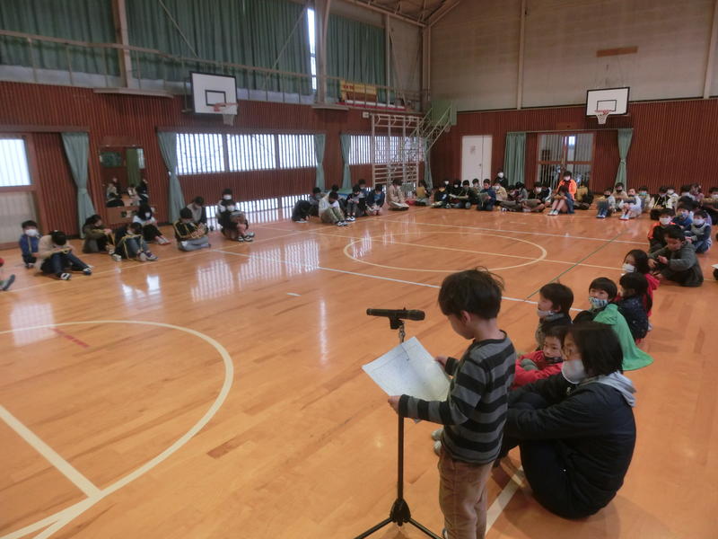 花丸金曜集会では、11月の月目標「生活:友達をたいせつにしよう。健康:丁寧な手洗い歯磨きをしよう。」の振り返りをしました。3年生と4年生が代表して発表しました。「遊び係がたくさんみんな遊びを提案して仲良く遊べました。」「人権学習のことを生かして、相手の気持ちを考えることができました。」など、しっかり振り返りができていました(^^)/