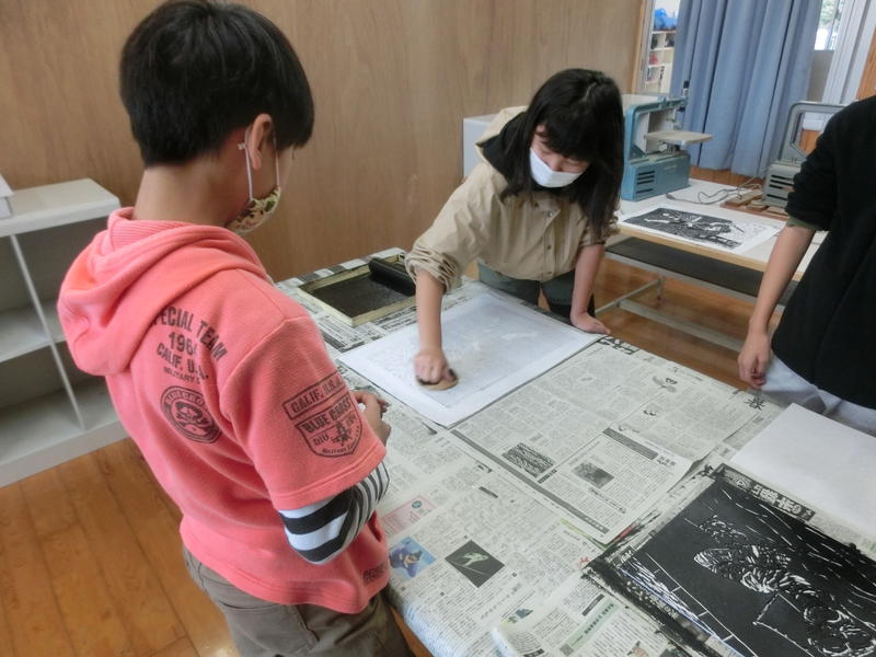 6年生は図工の「版画」を制作していました。協力して「刷り」の作業をしていました。今年も6年生の版画は「版画カレンダー」に掲載して、お世話になった地域の方や独居老人宅にお届けいたします。完成が楽しみです(^^)/