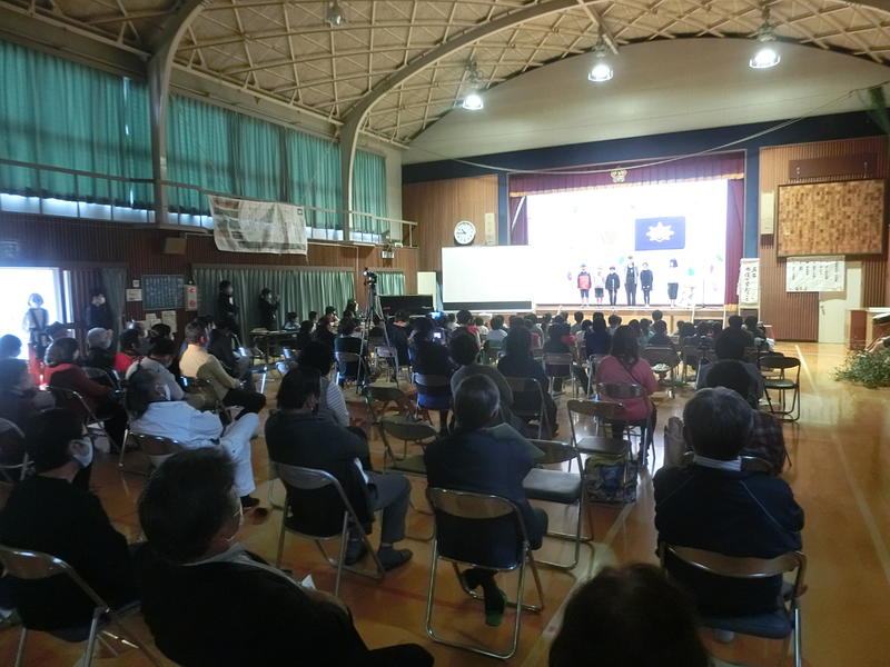 1年生の演目は「くじらぐも」。国語で学習した「くじらぐも」をアレンジした劇を発表しました。劇の中で会場の保護者とのやりとりもあり、子供と保護者の温かい声掛けに、思わず目がしらが熱くなりました。