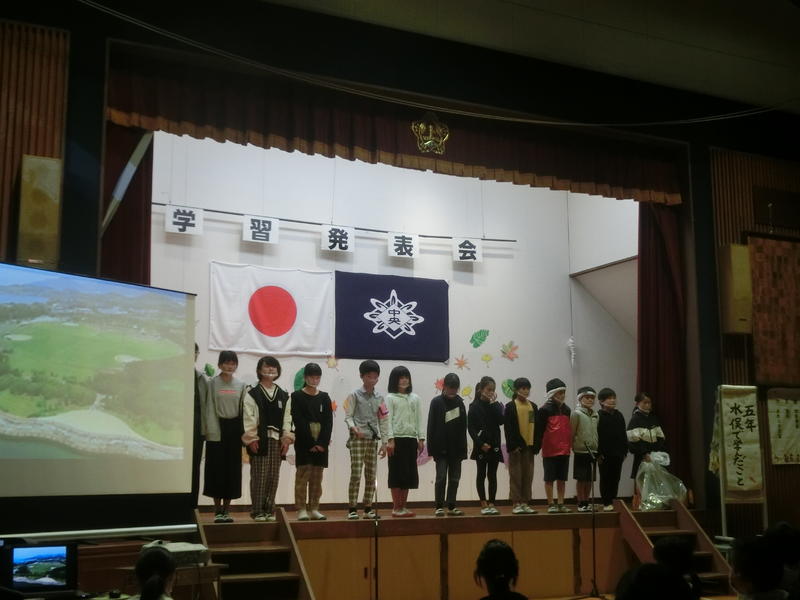 5年生の演目は「水俣で学んだこと」。5年生が水俣病学習で学んだことを5年生自ら台本を作り、発表しました。「命、環境、人のつながり」について考えたことを発表しました。フィールドワークで深く学ぶことができたことがうかがえました。