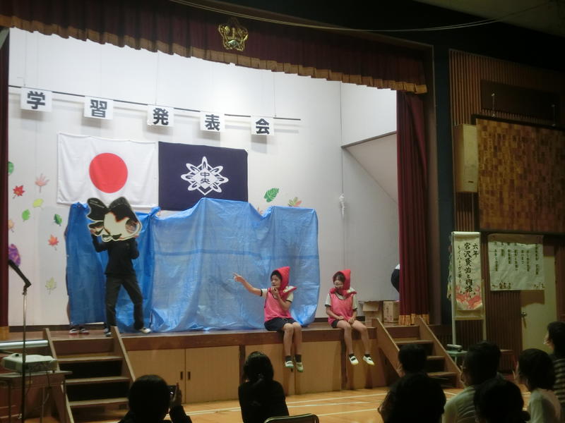 6年生の演目は「宮沢賢治と物語~イーハトーブの夢」。宮沢賢治の生き方や作品に込められたメッセージを劇で発表しました。「便利さを追求する社会」に疑問を投げかける宮沢賢治。作品も「やまなし」を始め、たくさん紹介してくれました。来週の「ぐっすりすいみん週間」で読む本が決まりましたね(^_-)-☆