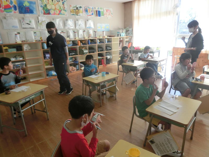 2年生が「歯磨き」の学習をしました。おやつを食べたら歯のどこが汚れやすいか、実際にクッキーを食べて鏡で確かめ、正しい磨き方で歯磨きをしました。ますます歯磨き名人になることができましたね(^^)/
