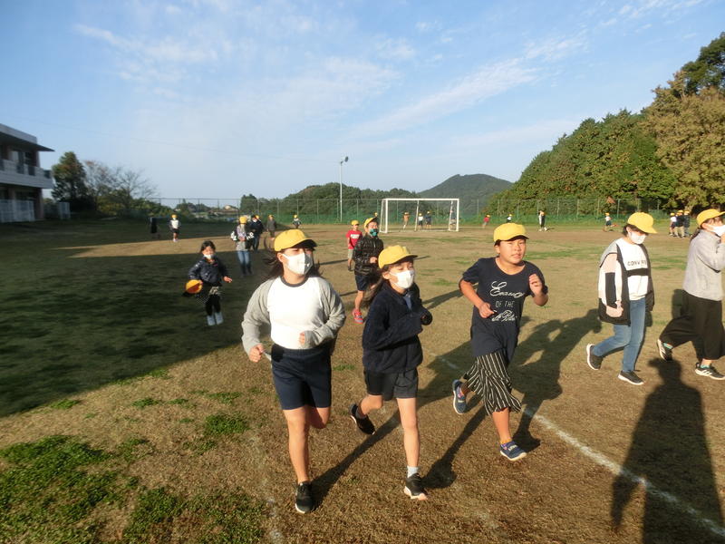 朝のランニングタイム。たくさんの児童が朝から気持ちのいい汗を流していました。明日から11月の「ぐっすりすいみん週間」です。運動をたくさんして「くじら列車(9時就寝)」に乗れるようにしましょう。鬼◯の刃の「無限列車」には乗らないように(^^)/