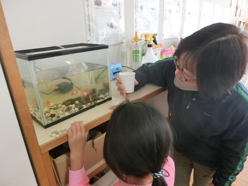 1年生は国語「しらせたいな見せたいな」の学習をしていました。金魚をしっかり観察して、知らせたいことを整理して書いていました(^^)/