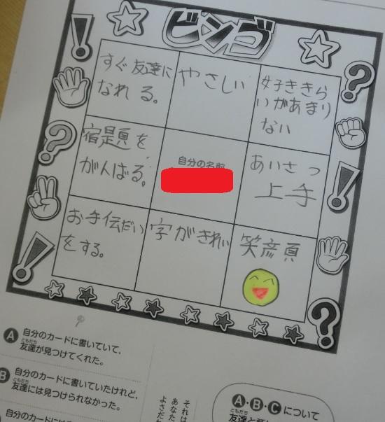 水曜日3時間目は一斉道徳。4年生は「つくればいいでしょ」(長所を伸ばす)の学習をしていました。授業の後半は「いいところビンゴカード」を使って、楽しく学びを深めていました(^^)/