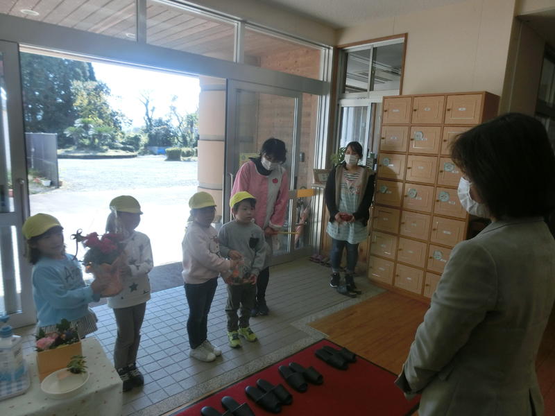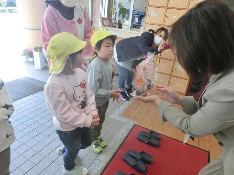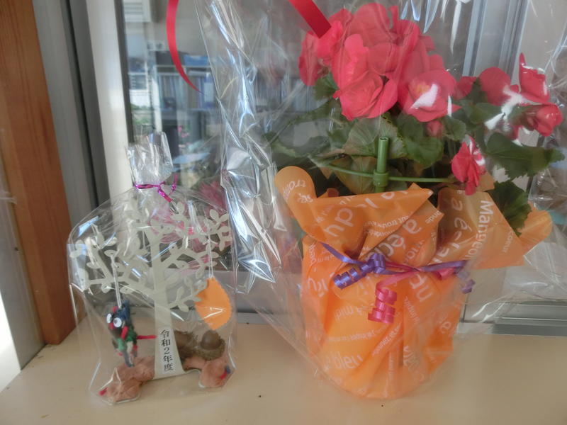 上野保育園から「勤労感謝の日」にちなんで、ステキな贈物をいただきました。来年度入学予定の代表園児が先生と一緒に持ってきてくれました。保育園の皆さんからもらったエネルギーでお仕事がんばりますね(^^)/