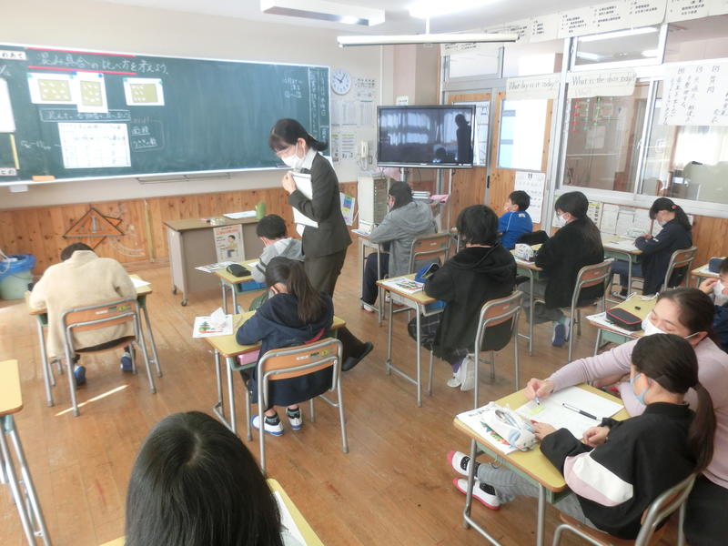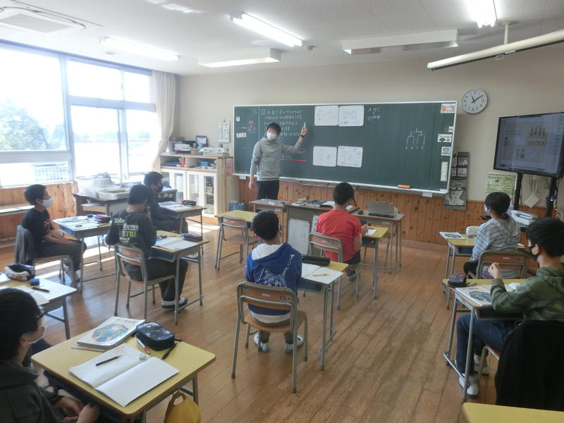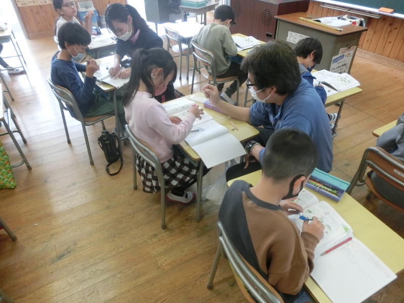 5年生は算数「比べ方を考えよう」の学習をしていました。混み具合を比べる方法を考えて発表していました。「~だから~のほうが密だと思います。」という発言が今年ならではですね。上杉指導主事(御船町教育委員会)に授業の様子を見に来ていただきました(^^)/