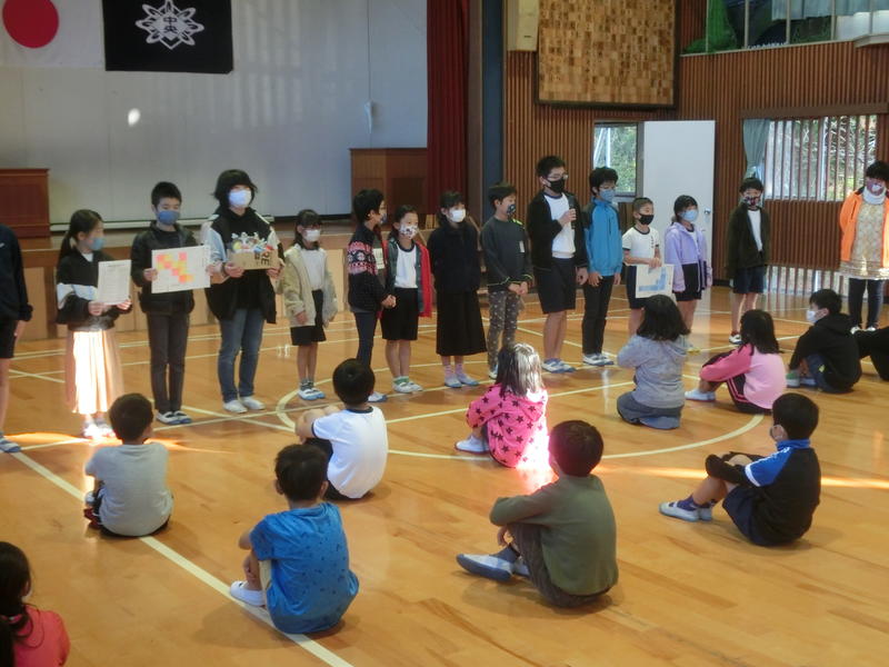 金曜集会では、11月の月目標「生活:友達をたいせつにしよう。健康:丁寧な手洗い歯磨きをしよう。」の振り返りをしました。3年生と4年生が代表して発表しました。「遊び係がたくさんみんな遊びを提案して仲良く遊べました。」「人権学習のことを生かして、相手の気持ちを考えることができました。」など、しっかり振り返りができていました(^^)/