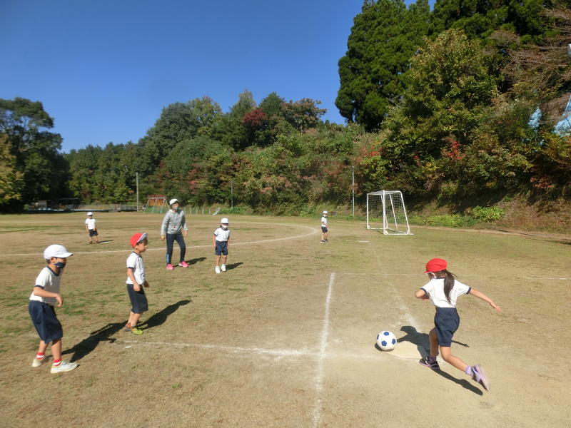 1年生は体育で「キックベースボール」の練習をしていました。ルールを試しながら聞いて、「うぁー!野球みたい!!」との声。その通り!です(^^)/