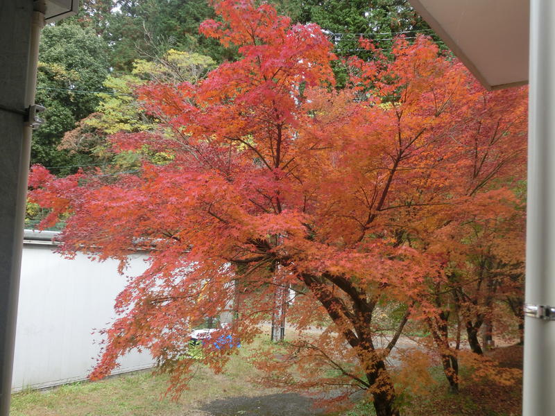 学校の「もみじ」が色づいています。とても見事で心が癒やされます(^^)/