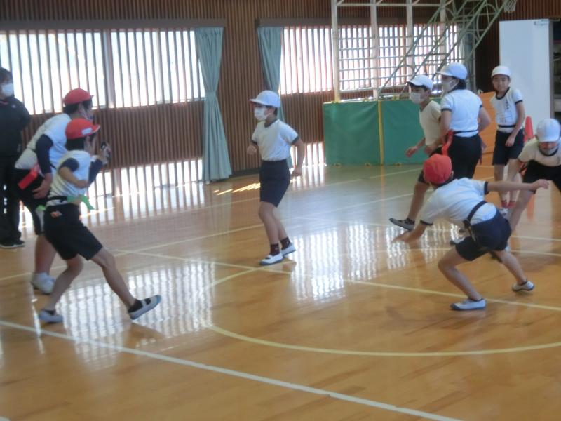 4年生は体育で「タグおにごっこ」をしていました。腰に着けたタグを取られないように逃げます。心も体もホカホカになっていました(^^)/