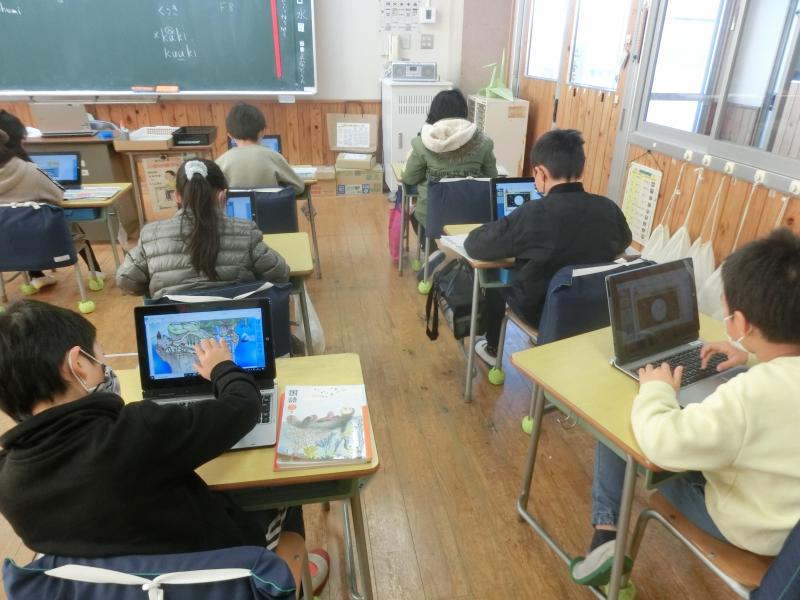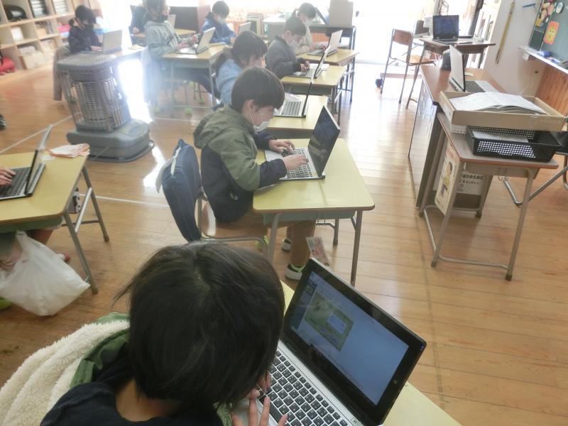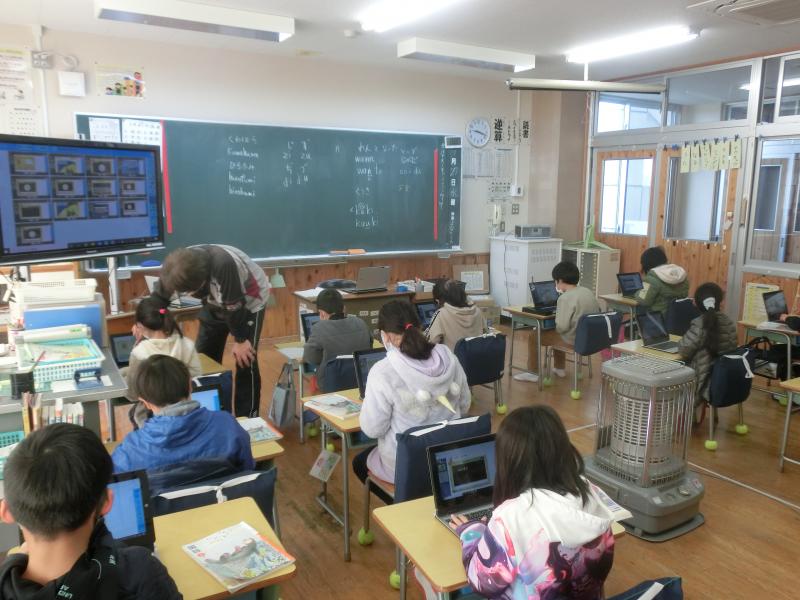 3年生は総合的な学習の時間で、タイピング練習に取り組んでいました。素早いローマ字入力が身に付くように頑張っていました。ちなみに3年生の先生は「今日の給食は牛丼!」とモチベーションが高く授業をされていました(^^)/
