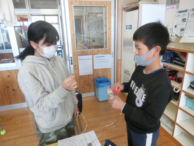 6年生は理科「私たちの生活と電気」を学習していました。豆電球と発光ダイオードでは、使う電気の量に違いがあるのかを実験していました(^^)/