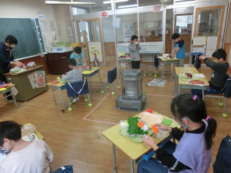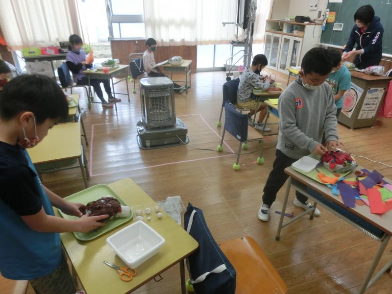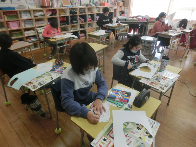 4年生は図工「学校もりあげマスコットをつくろう」を学習していました。手洗いを呼びかけるせっけんマスコットや、読書を呼びかける本の形のマスコットなど、工夫された楽しいマスコットたちを作っていました。マスコットは校内の関連のある所に掲示されます(^^)/