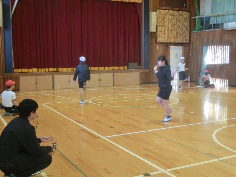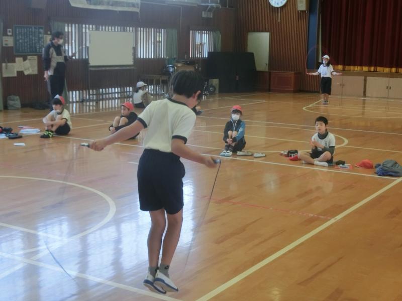朝のなわとびタイム。今週は「かけ足跳び大会」週間。先生による「かけ足跳び」講習が開かれていました。先週の「両足跳び大会」では、前後とも4年生児童がチャンピョンに輝きました。さて、今週はどうなるでしょうか(^^)/