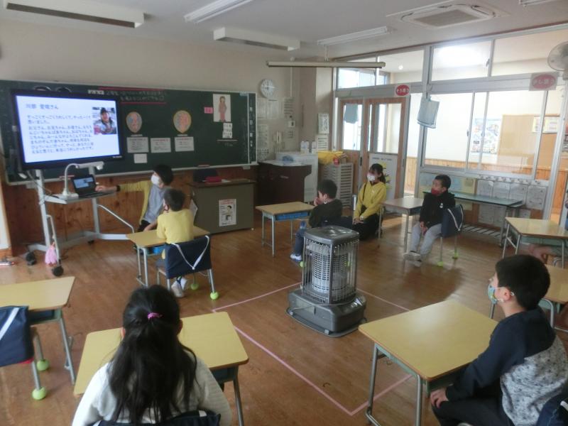 1・2年生は6時間目に、櫛山忍先生(御船小学校:学校栄養職員)からリモートで食育講話をしていただきました。給食の工夫やバランスの良い食事について、クイズを交えて楽しく学ぶことができました。櫛山先生、いろいろとありがとうございました(^^)/