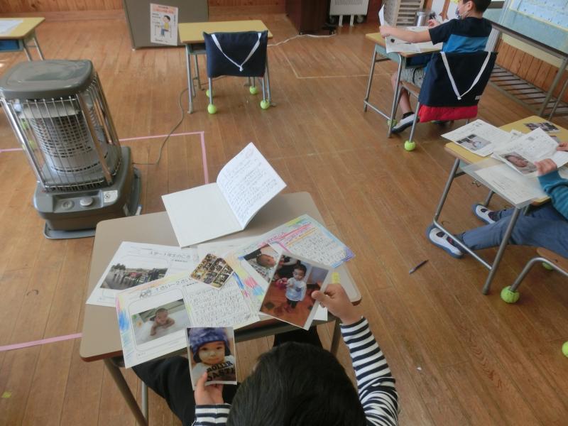 2年生は生活科「あしたへジャンプ」の学習をしていました。小さかった頃の自分の写真に目を細めながら、自分の成長の記録を丁寧にまとめていました。最後に冊子になるようです。完成が楽しみですね(^^)/