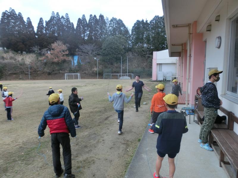 朝のなわとびタイム。寒さに負けず、たくさんの児童がなわとびの練習をしていました。友達と教え合っこしている姿も見られました。みんなで上手になりますね(^^)/