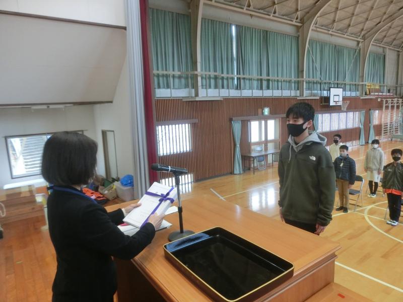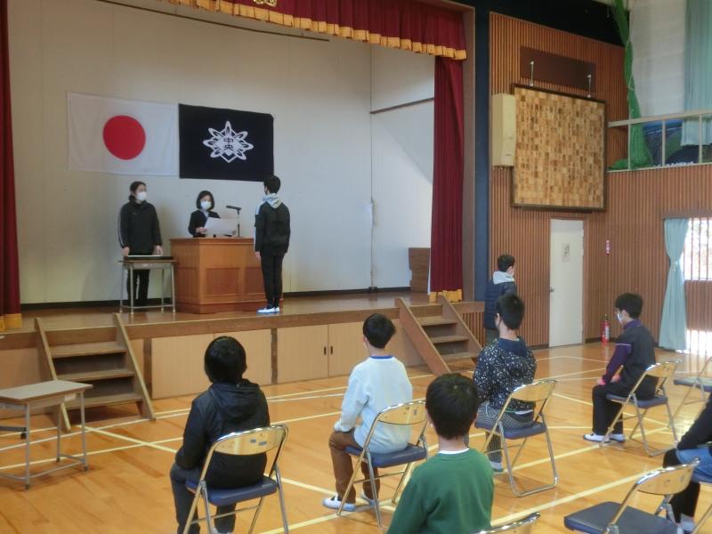 1時間目「修了式」を行いました。修了証を受け取り、代表児童が今年度頑張ったことと来年度頑張りたいことなどを発表しました。校長先生からは、1学年ずつ成長したところや頑張ったことを褒めてもらいました。また、感染症対策のため参列できなかった昨日の卒業式の一部を視聴しました。昨日の感動の卒業式の様子が在校生にも伝わりました。在校生の皆さんも、もうすぐ学年が1つあがります。七滝中央小学校をたのみますよ(^^)/