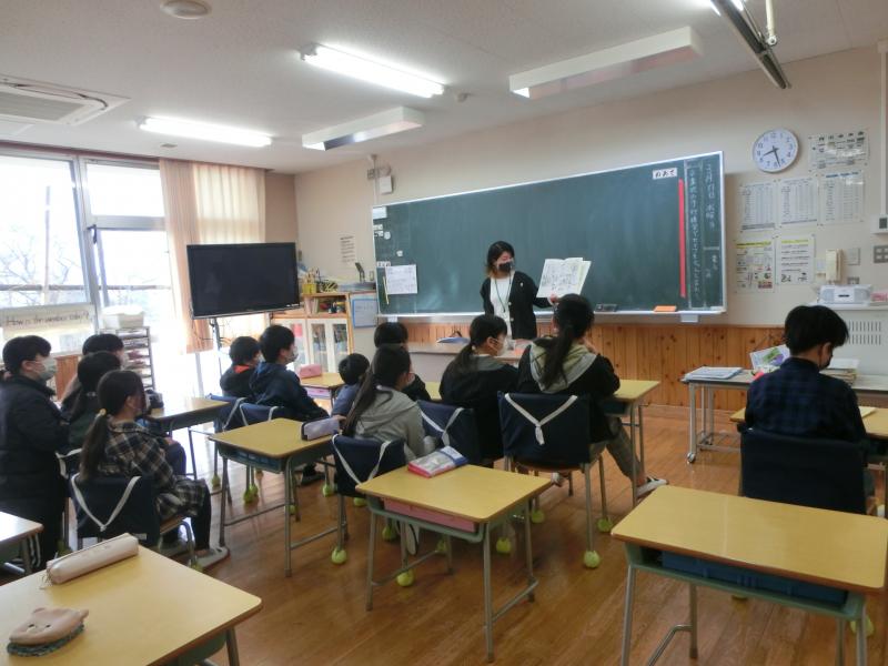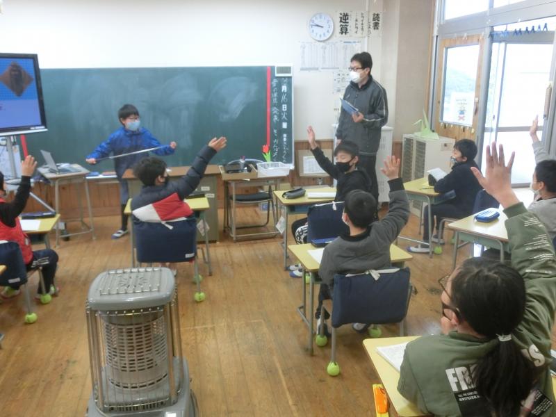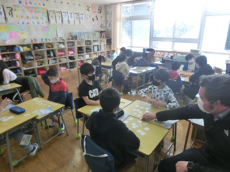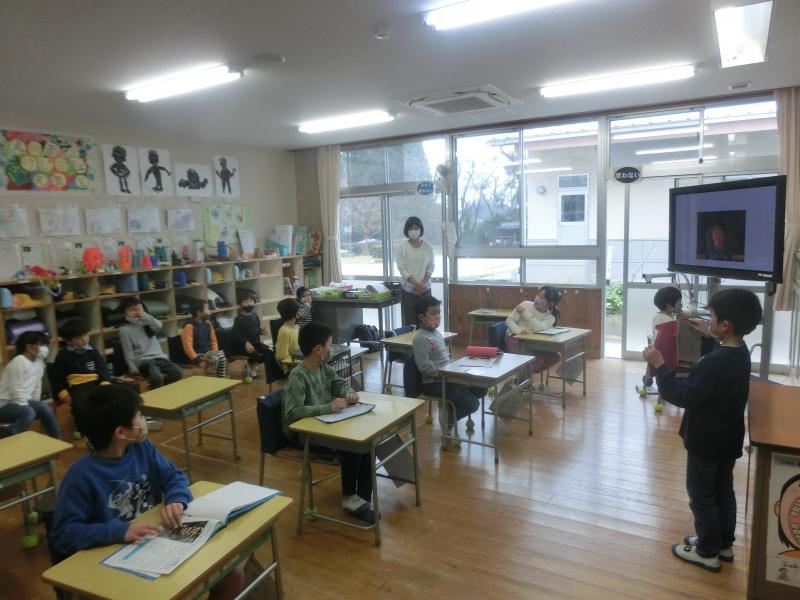 3年生は、外国語活動の学習をしていました。ゲーム形式で、既習内容)について楽しく振り返りながら取り組んでいました。みんな大変意欲的に正確に答えることができていて、今年一年の成長が伺えました(^^)/
