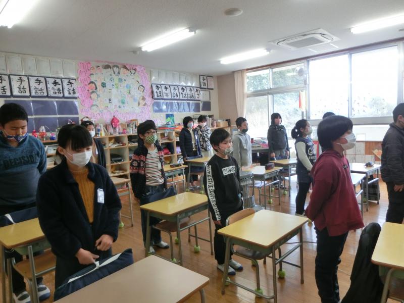 校長先生から放送で「3.11」についてお話がありました。東日本大震災がどんな災害だったのか、振り返ってどんなことを考えるべきか(「生きていく人間の強さや優しさ」「人として故郷のために自分に何ができるか考えて行動する」)についてのお話でした。そして2時46分に全校児童で黙祷を捧げました。