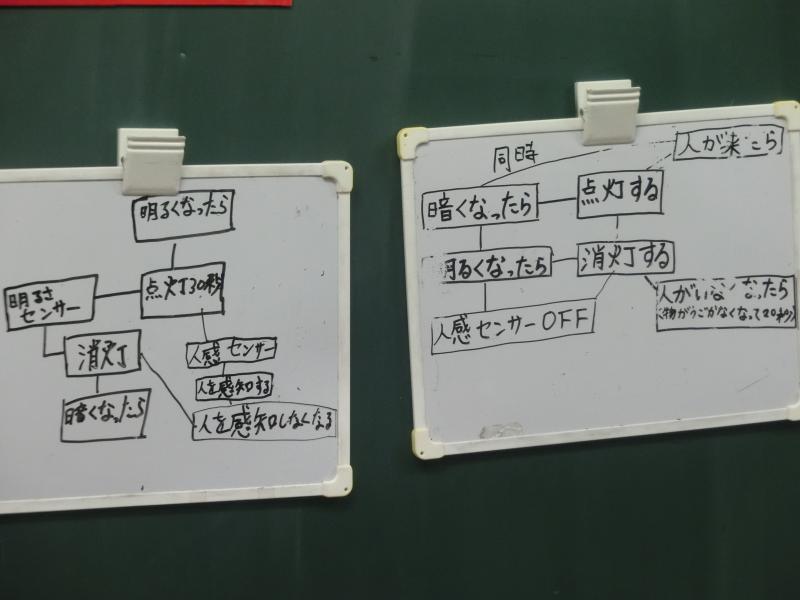 6年生は理科「私たちの生活と電気」でプログラミングの体験をしていました。教材ソフト「MESH」を使って、プログラミング的思考を高める学習、生活と関連付ける学習をしていました。プログラミングをフローチャートで考え、「人感センサーライト」が必要なときだけ点灯する、「条件」と「動作」の組み合わせを考えることができました。奥が深い(*^^*)