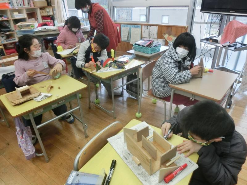 4年生は図工「トントンつないで」の学習をしていました。金づちで釘をトントンがんばって打っていました。お気に入りの作品に出来上がりましたか(^^)/