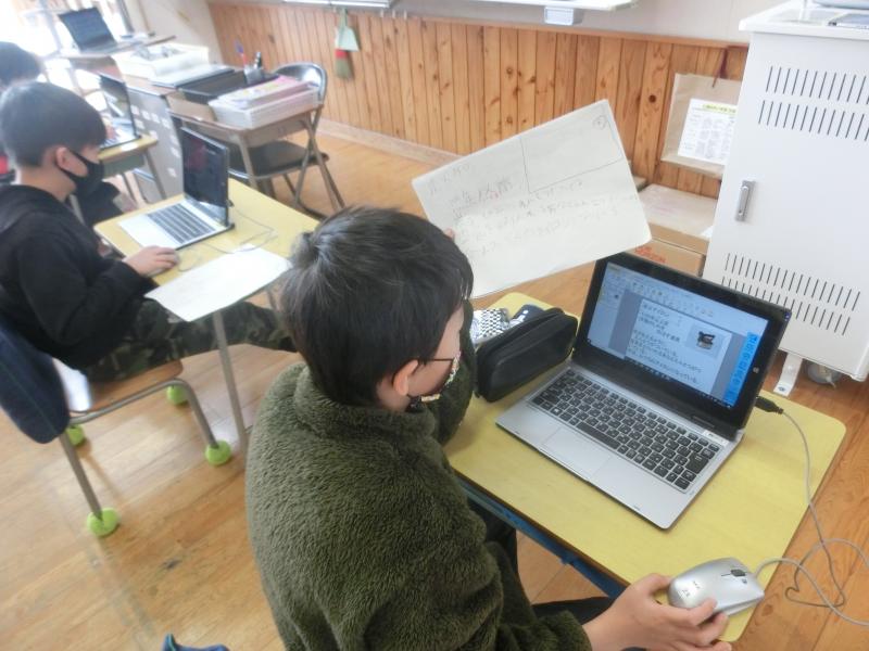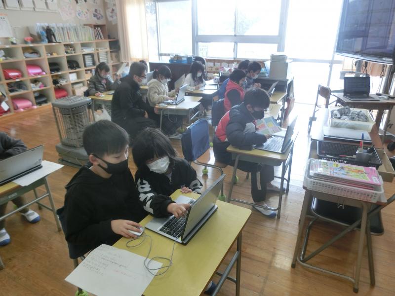 3年生は社会科「市の様子と人々のくらしの移り変わり」の学習をしていました。パソコンを使って「昔の道具」について調べたことをまとめた資料の準備をしていました。写真を入れたり、分かりやすい言葉にしたり、工夫した発表資料ができていました。明日が発表とのこと。がんばってください(^^)/