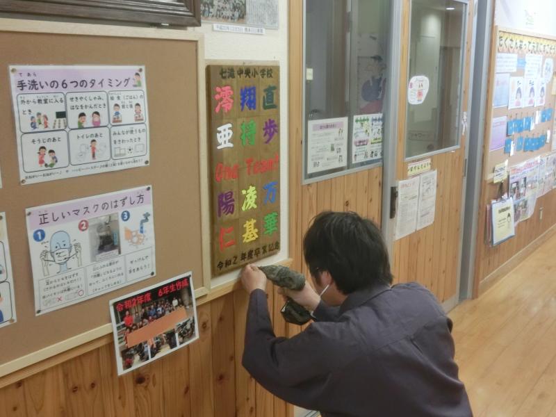6年生の卒業制作がついに最終完成しました。11月の親子作業でつくった「校長室前掲示板」にレリーフを飾り付けて完成しました。取り付けには保護者の川上幸太郎さんにご協力をいただきました。本校の一番目立つところのメイン掲示板になります。この掲示板を見て、6年生のことをいつまでも思い出します。6年生の皆さん、ステキな卒業制作をありがとうございました(^^)/