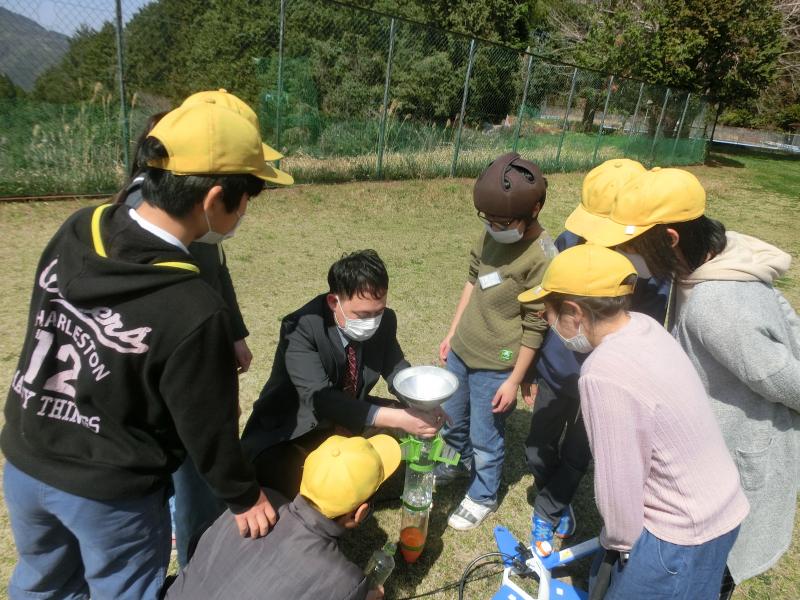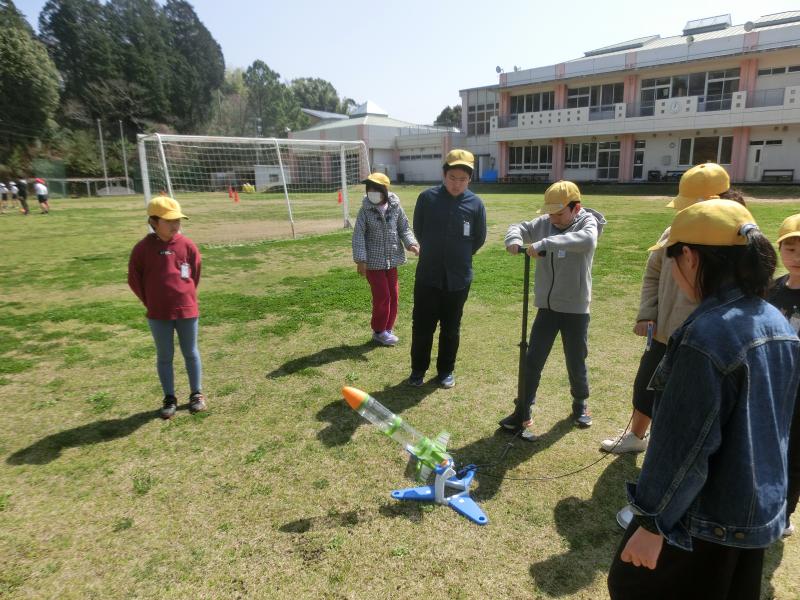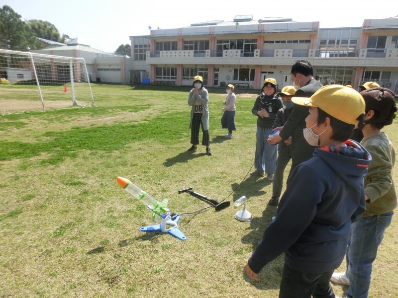 4年生は理科「すがたを変える水」の学習をしていました。ペットボトルロケットを春の青空めがけて発射させました(^^)/