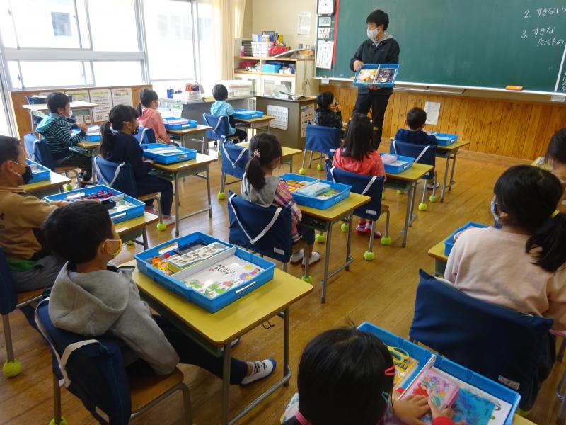 花丸待ちに待った読み聞かせの時間です。毎週水曜日、いろんなお話と出会うことができます。これからも楽しみです!