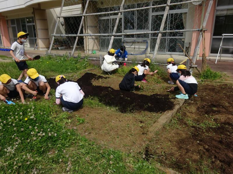 花丸中庭では、4、5年生が理科の勉強で畑の整備をしていました!