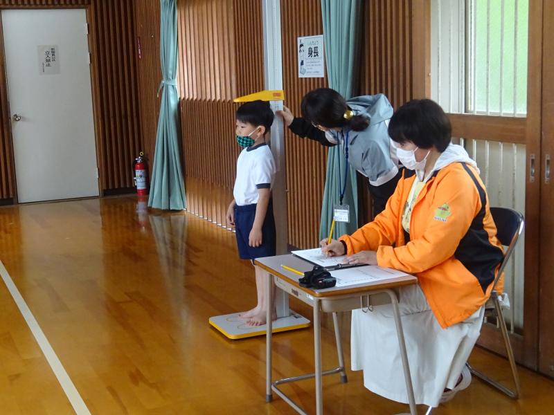 花丸3時間目は発育測定、身長、体重、視力、聴力の検査をしました。さて、どれだけ大きくなったかな?