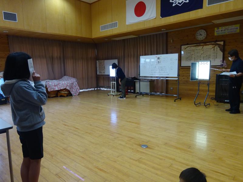 花丸1、2年生の合同の体育の学習です。ソーシャルディスタンスをとりながら、「1、2、3、4、・・・」上手に体操をしていました! 2年生が体操のやり方を1年生に教えてあげていました。立派なお兄さん、お姉さんです。