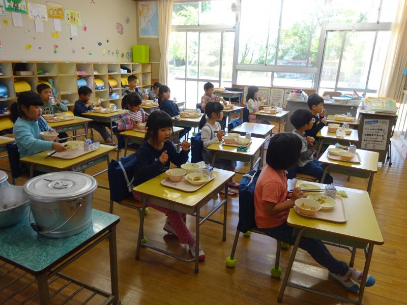 1年生は、小学校での給食も3日目、今日は「おかわりください!」の声が1年生の教室から聞こえていました! もりもり食べていますね! 給食、おいしい