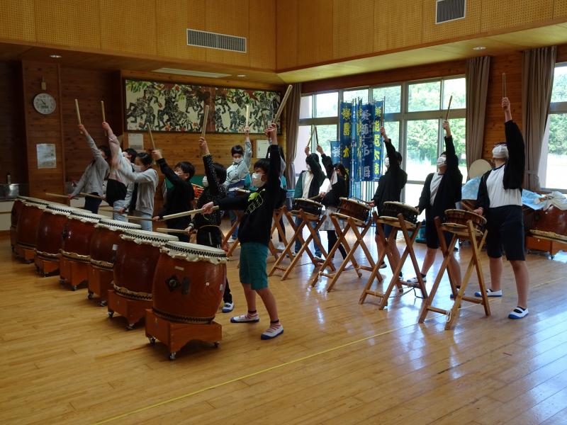 6年生は「神風太鼓 響」の練習をしていました。力強い太鼓の音が学校中に響いていました!