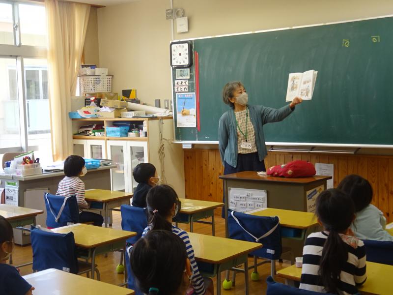 待ちに待った読み聞かせの時間です。毎週水曜日、いろんなお話と出会うことができます。これからも楽しみです!