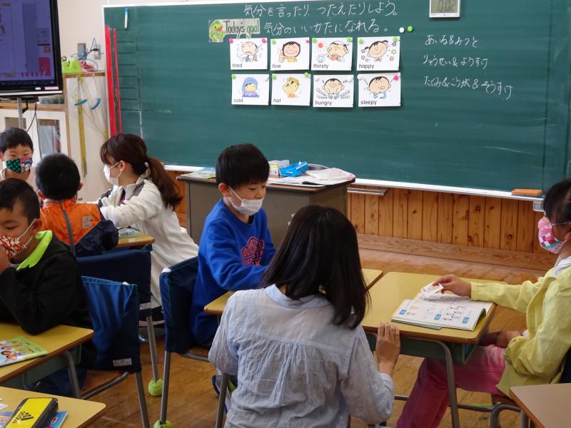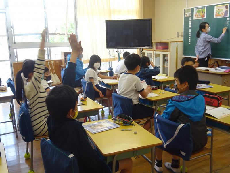 英語専科の齋賀先生と一緒に外国語活動の学習です。