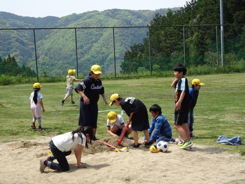 昼休みのひととき…気持ちの良い青空の下、緑の運動場で思いっきり遊ぶ子ども達です!