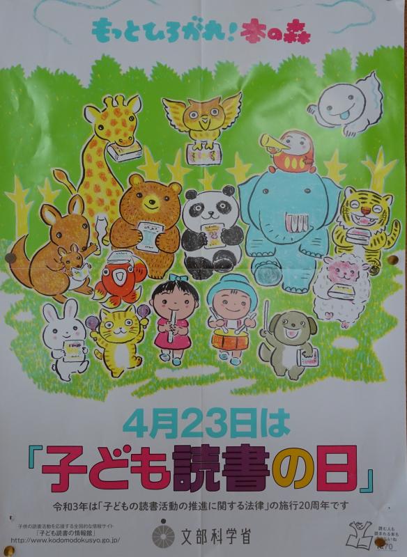 今日4月23日は「子ども読書の日」です。そして、今日から5月12日まで、「子どもの読書週間」です!七滝中央小学校では、来週、各学級の先生方が学級での「読み聞かせ」をします! 本好きの子どもを育てる取組の始まりです