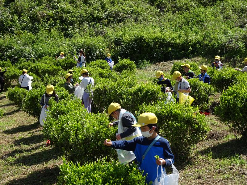 3、4年生で茶摘みをしました。「一針二葉(いっしんによう)、