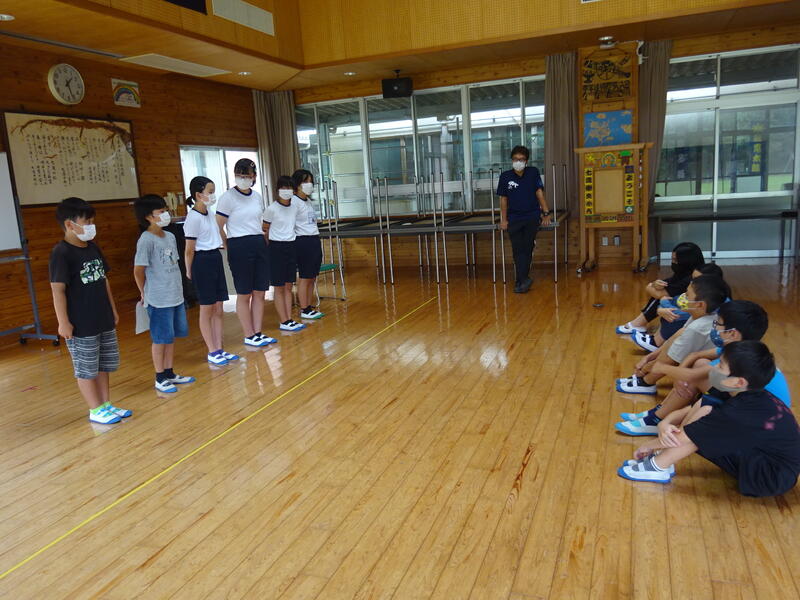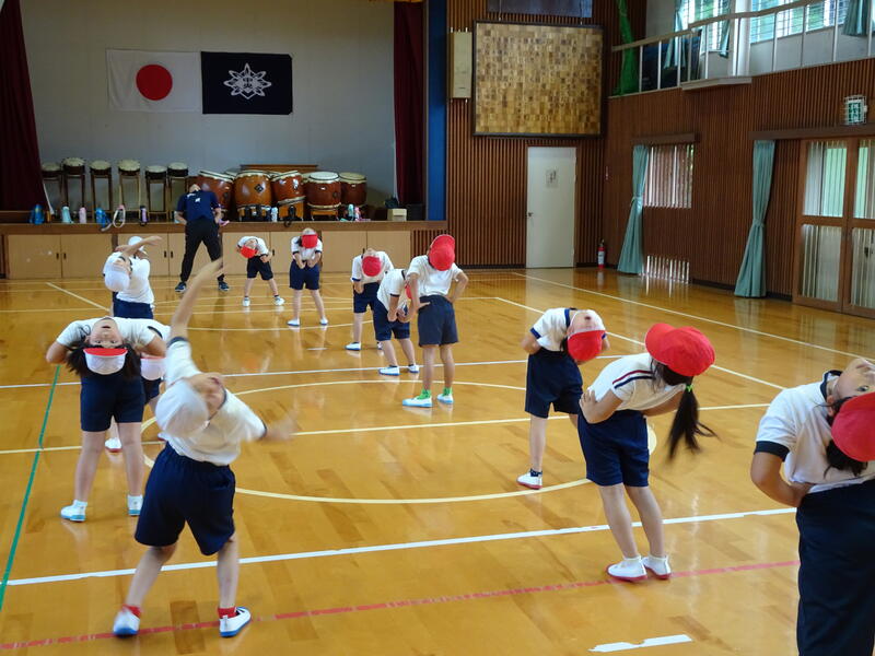 全校ダンスは恒例の「御船音頭」!池上先生が、稲穂が実る様やお月様…と、動きの意味を教えながら指導しました。