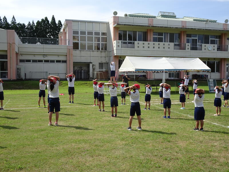 晴天の下、運動会予行練習を行いました。残暑が厳しい中でしたが、子供達も元気に頑張りました。また、本番に向けて気持ちも高まってきています。当日を元気に迎えられるようにお家でもご協力をよろしくお願いします!!