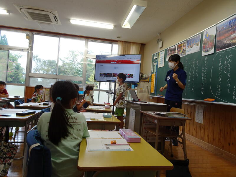 4年生は、齋賀先生と外国語活動をしました。文房具の勉強でした。外国の小学生はどんなものをもって学校へ行っているか、動画を観て学びました!!