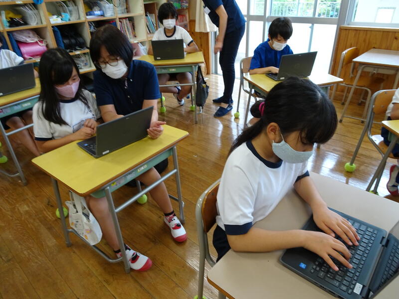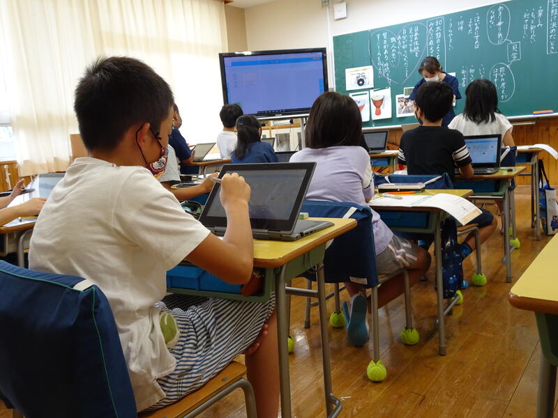 4年生の国語の学習です。一人一台のタブレットを使って、文字を入力するタイピングの練習を行いました。