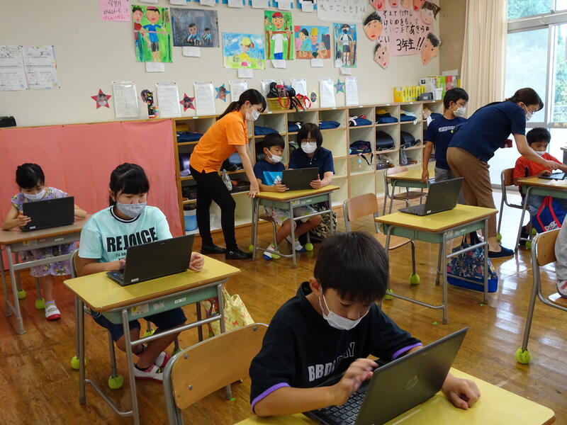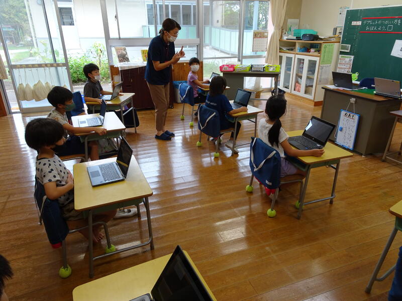 そして、今日は「はじめてのタブレット学習」の時間を設けて、ICTサポーターの方をお迎えして4、5、6年生がタブレットの使い方を学びました!!