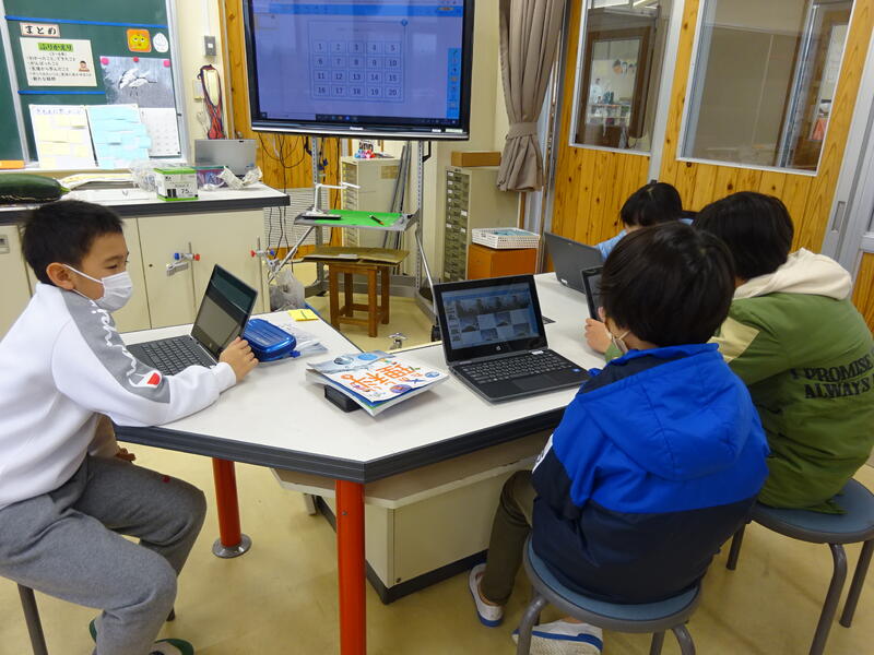6年生の理科の学習です。学習のまとめとして「ご当地カルタ」づくりをしました。子供達は、タブレットを活用して、化石などの写真なども取り入れながら楽しく活動できました。