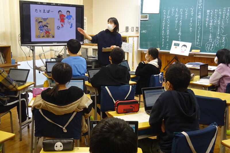 4年生は、「新次のしょうぎ」というお話を読みました。失敗をしてもごまかさずに正直に話すことの良さに、お話の主人公の気持ちを考えながら気づきました